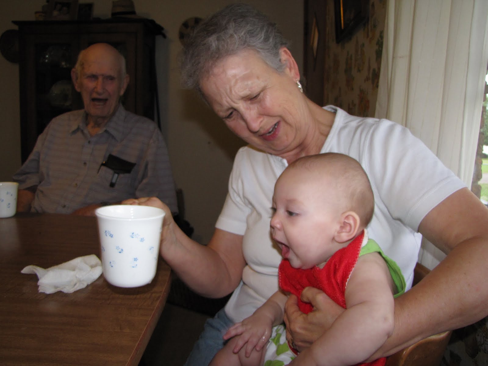 1) I took the girls up to see Mom again. It was a great visit! We went up to see her parents in Wayne, OK. It was so good to see them!! Kenley decided she wanted a taste of Oma's coffee! :) She kept pulling Mom's cup toward her and chewing on the edge of the cup. She is getting so big.